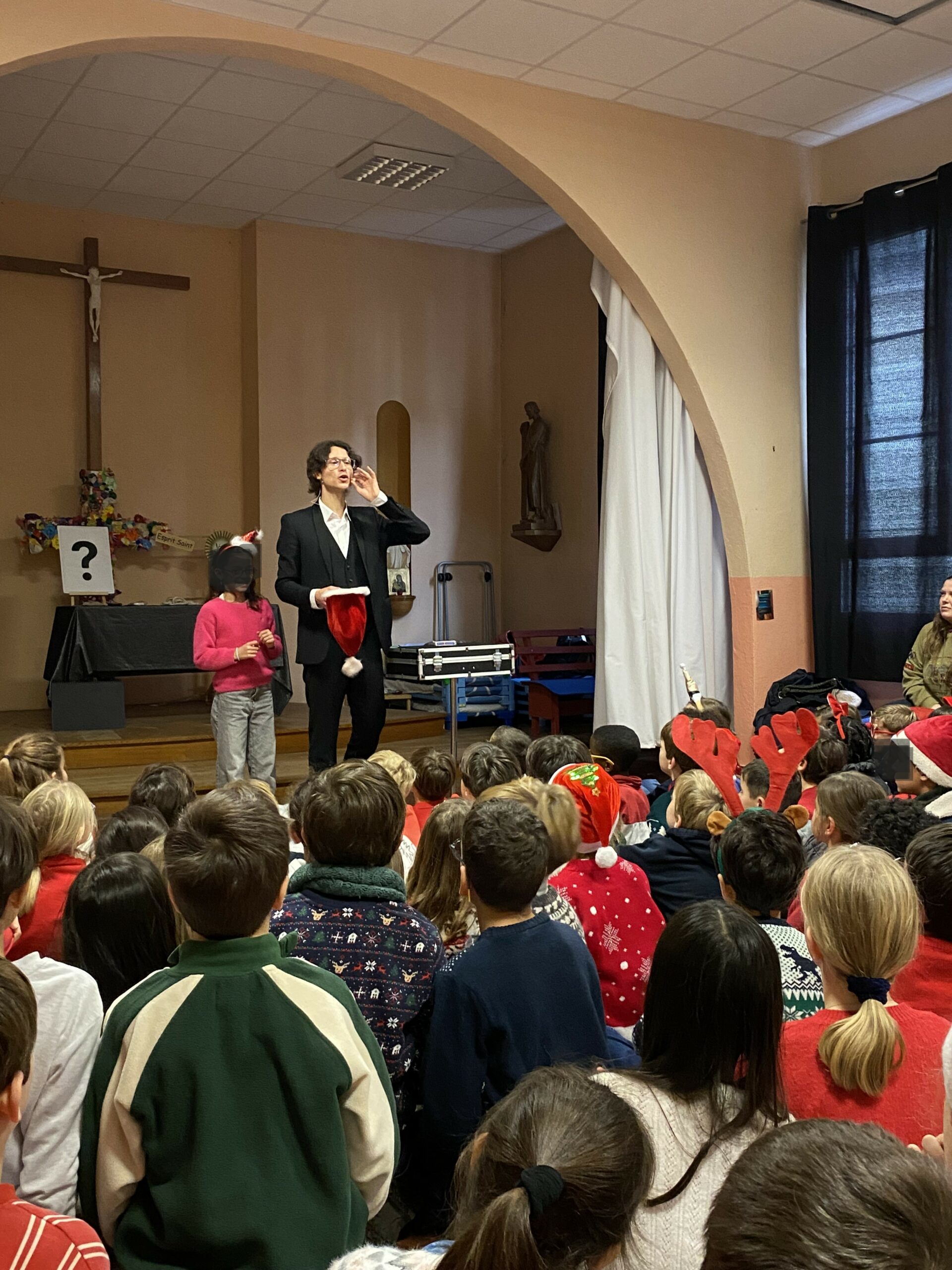Ce spectacle restera sans aucun doute un très beau souvenir pour tous. Un grand merci à notre magicien Magic Mat pour ce moment enchanteur qui a su rassembler toute l’école autour de la joie et du partage.